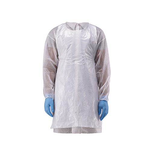 Durable disposable apron made from recycled polyethylene, offering reliable splash and stain protection for food handling, cleaning, and industrial use.