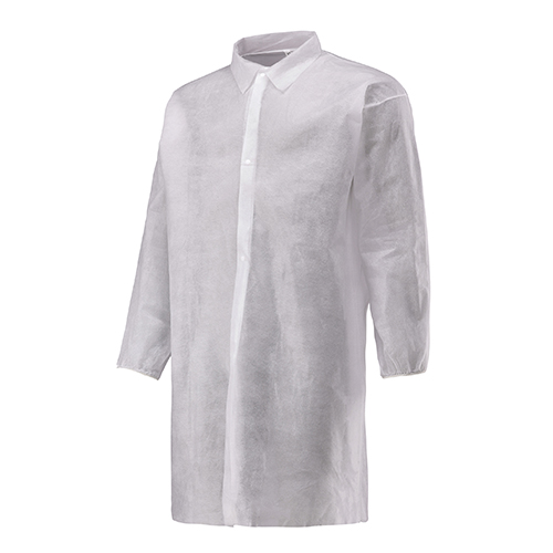 The Disposable Lab Coat provides a fresh, hygienic barrier for each use, helping to minimise cross-contamination risks in laboratory, medical, food handling and cleanroom environments. Made from 40gsm non-woven spunbond polypropylene, it is lightweight, breathable and comfortable for extended wear while offering essential protection against dust, splashes and general workplace contaminants. The coat features elasticated cuffs to keep sleeves securely in place, five Velcro fasteners for easy on-and-off use, and a collar for a neater, more protective fit. Designed for single-use convenience, it supports strict hygiene protocols and is ideal for environments requiring consistent cleanliness.