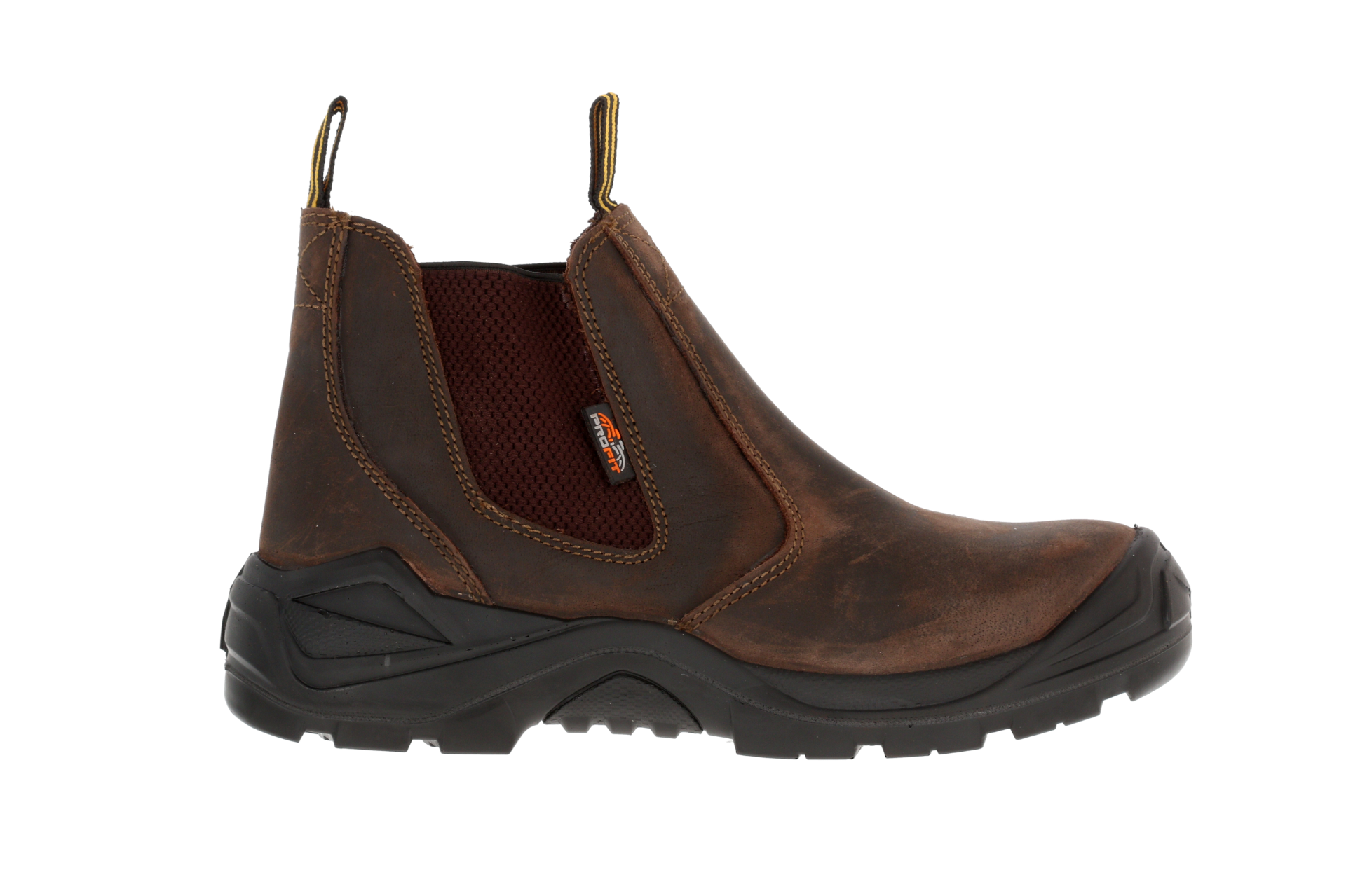 The Profit Assassin Chelsea Boot is a durable, lace-free work boot designed for comfort, versatility and a modern look that transitions effortlessly between work and casual wear. Made from S2 oily waxy, water-repellent full grain leather, it offers long-lasting resilience and a comfortable wide fit suitable for extended use. Available in two versions — with a steel toe cap or without a steel toe cap — the Assassin accommodates both safety-focused environments and workplaces where toe protection is not required. The dual density PU sole provides excellent shock absorption and traction, while the anti-static ProFit ComFit insole enhances comfort and support. Offered in a classic brown finish, the Profit Assassin Chelsea Boot combines functionality, comfort and style in one versatile package.