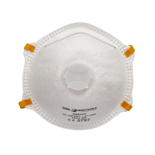 The Rebel Airmaxx FFP2 Disposable Dust Mask with Valve offers the same reliable protection and comfort as the standard Airmaxx FFP2 mask, with the added benefit of a rubber one-way exhalation valve for easier breathing. Designed to protect against low levels of dust, solid, and liquid aerosols, this mask ensures dependable filtration and reduced breathing resistance during extended use. Its low-profile design and adjustable aluminium nose clip provide a secure, comfortable fit, while the 3-layer construction ensures effective filtration and durability.