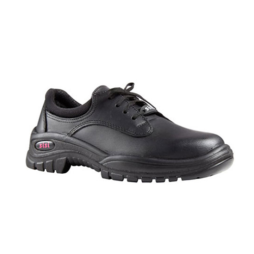 The SiSi Nicole Ladies Safety Shoe delivers reliable protection and comfort in a smart, low-cut design. Made from full grain leather, the upper offers durability and a professional finish, while the padded mesh collar enhances breathability and ankle support. A four-pair punch-hole lace-up system ensures a secure, adjustable fit. Inside, a needle-fibred vamp lining provides excellent perspiration absorbency, supported by an anti-static in-sock and an anti-bacterial Energiser top sock with EVA inserts for improved comfort and shock absorption. Shank reinforcement offers dependable arch support, with an optional steel midsole available on selected models. A dual density PU/PU sole with heat resistance up to 95°C is paired with a steel toe cap for essential impact protection.