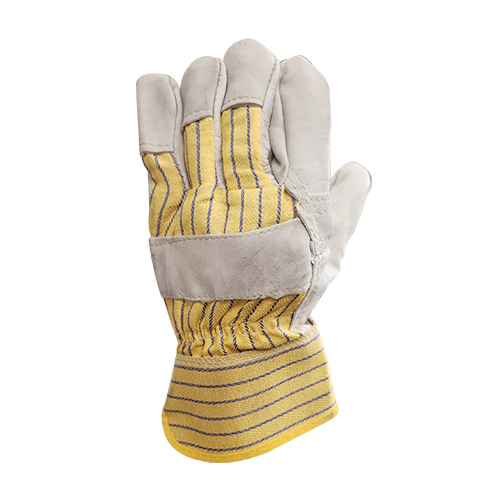 This Cow Hide Leather & Candy Stripe Premium Glove is engineered for enhanced durability, comfort and flexibility in demanding handling environments. Built with a soft split leather patch palm, the glove offers excellent grip, breathability and long-lasting wear, while the drill cotton back ensures airflow and reduces heat build-up during extended use. The gunn cut design improves dexterity and reduces hand fatigue, and the wing thumb supports natural movement and added comfort during repetitive tasks. Reinforced leather inserts across the knuckles and upper fingers provide extra protection in high-wear areas. Finished with a drill cotton open cuff and reinforced hem, this glove allows quick removal while delivering a secure and durable fit.