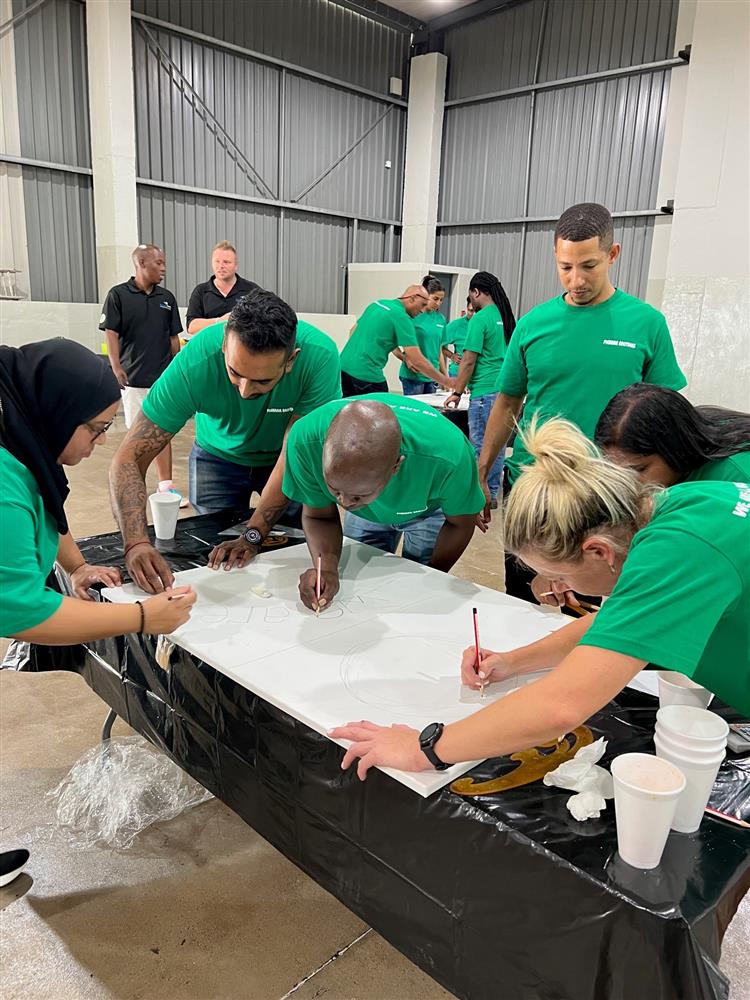 With the assistance of Beach and Bush, a renowned South African teambuilding company, we hosted an event for our new KZN team on 10 February at our new premises in Riverhorse Valley. 22 staff members were divided into 4 groups, and each group was presented with a minimised piece of the bigger picture.
